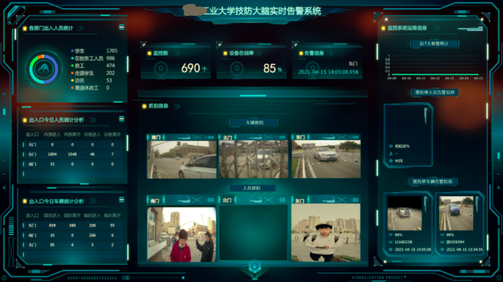 湖南XX學校安防監控2018年改造升級為融合安防平臺,現已具備視頻AI、邊緣計算、物聯網大數據功能。已融合學工系統、人事系統、宿管系統等人員基本信息及入住信息數據。現已建設視頻監控、匝道門禁、人臉測溫、車輛門禁、車輛測速、人臉抓拍等安防功能應用,加大數據共享應用。現已實現功能如下: