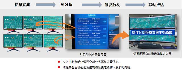 主動敏銳的“信息找人”。系統采用AI技術識別和告警推送,將SCADA等系統的各類告警信息提煉加工,自動判斷警情的級別、類別和責任部門,自動執行預定義的業務處理流程,將告警信息推送給對應的調度員,操作區自動切換成告警主機畫面。
