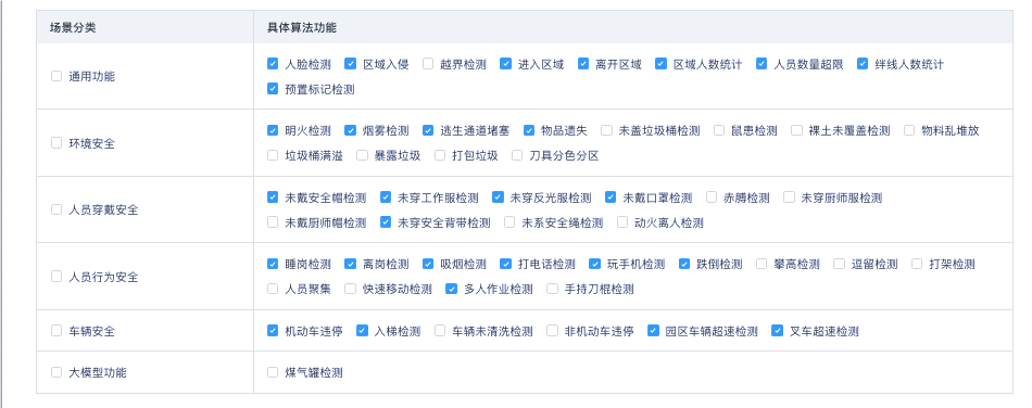為了園區廚房在已經安裝攝像頭的基礎上,進行后廚工作人員衛生監管,通過邊緣智能小站實現人像識別、明火檢測、煙霧檢測、工服、反光服/帶、吸煙檢測、打電話檢測、玩手機檢測、絆線人數統計、跌倒檢測、口罩檢測等,實現就餐區域實現展示,集團大數據實時監管和管理人員通過小程序能實時監督。